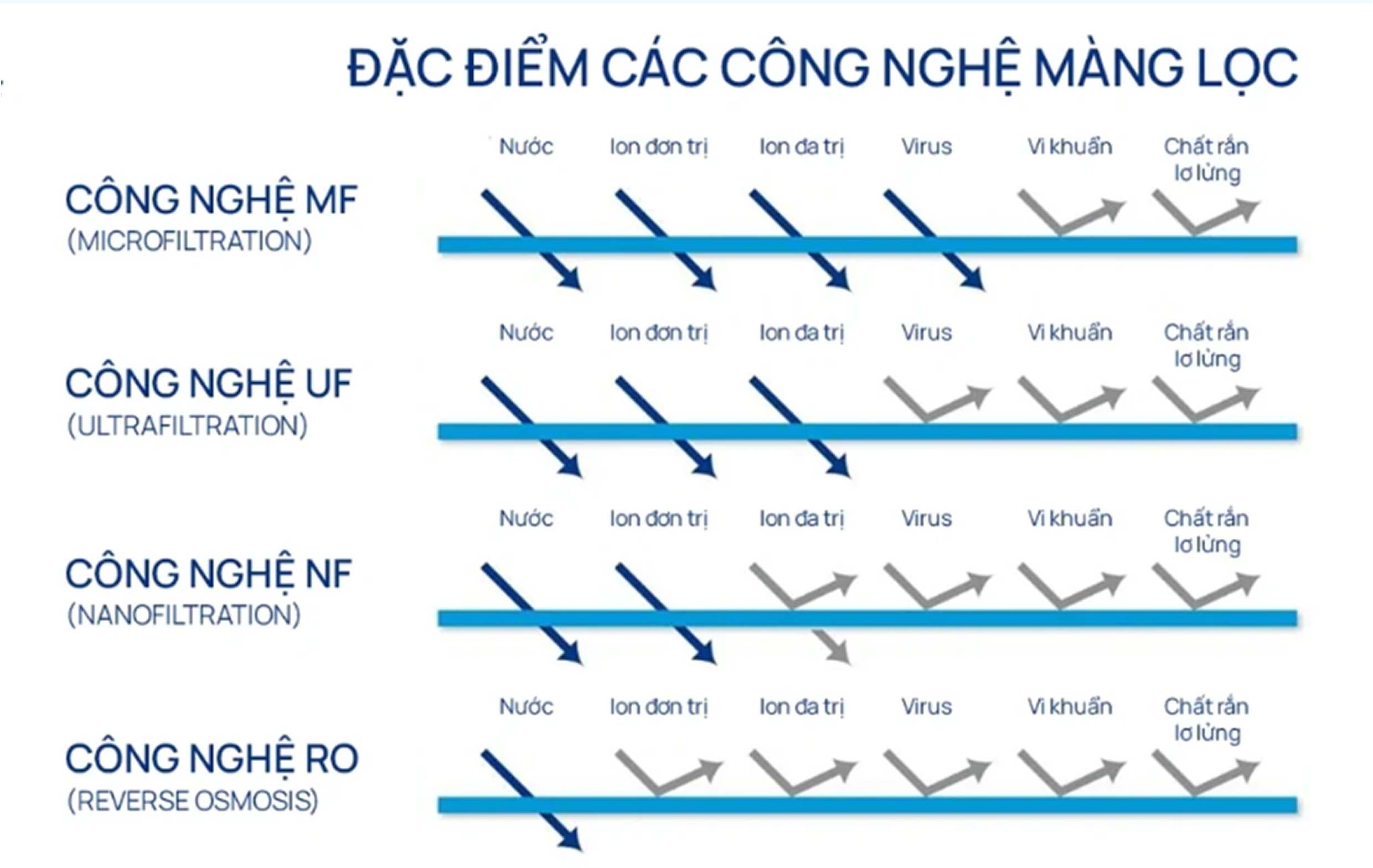 - Thẩm thấu ngược (RO): Trong quá trình này, nước bị ép qua màng bán thấm dưới áp suất cao, cho phép chỉ các phân tử nước và một số ion nhỏ đi qua, trong khi giữ lại các ion kim loại nặng như chì. Điều này giúp giảm nồng độ chì trong nước đến mức an toàn.