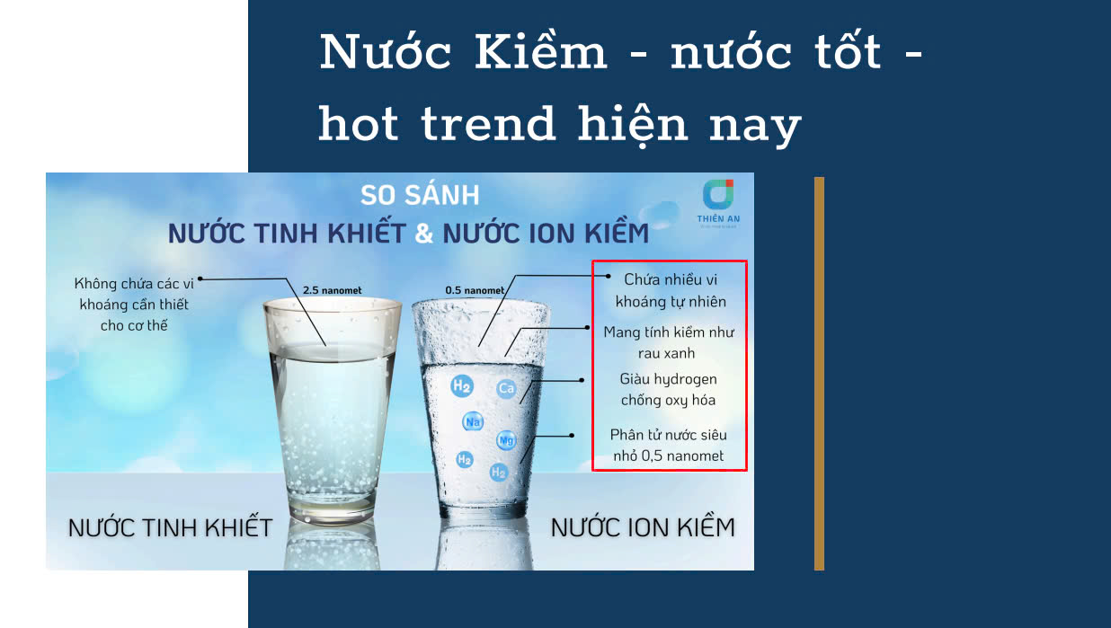 - Cấu trúc phân tử nhỏ: Các phân tử nước ion kiềm được cho là nhỏ hơn so với nước thường, dễ dàng hấp thụ qua tế bào.
