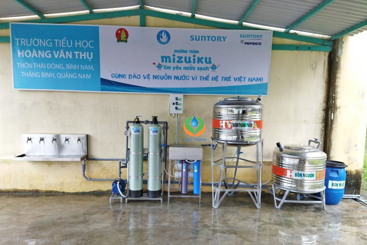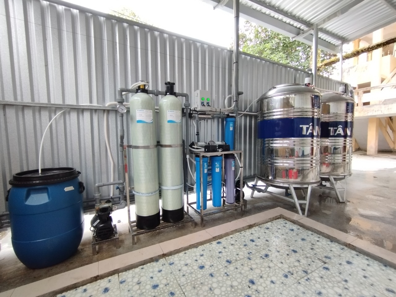 Hệ thống này được lắp đặt tại nguồn cấp nước chính của trường, giúp xử lý nước trước khi phân phối đến các vòi nước sử dụng.