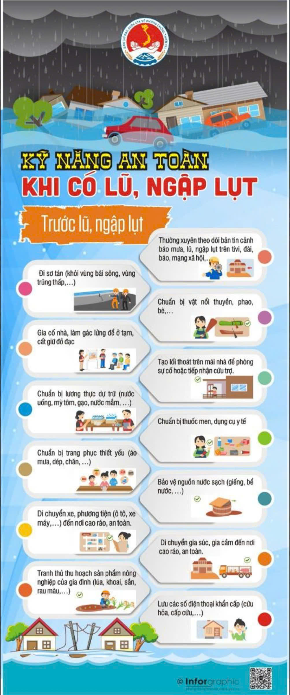 9️⃣ Dự trữ, bảo vệ lương thực, thực phẩm, nước uống, thuốc chữa bệnh dự phòng ngập lụt, chia cắt nhiều ngày.