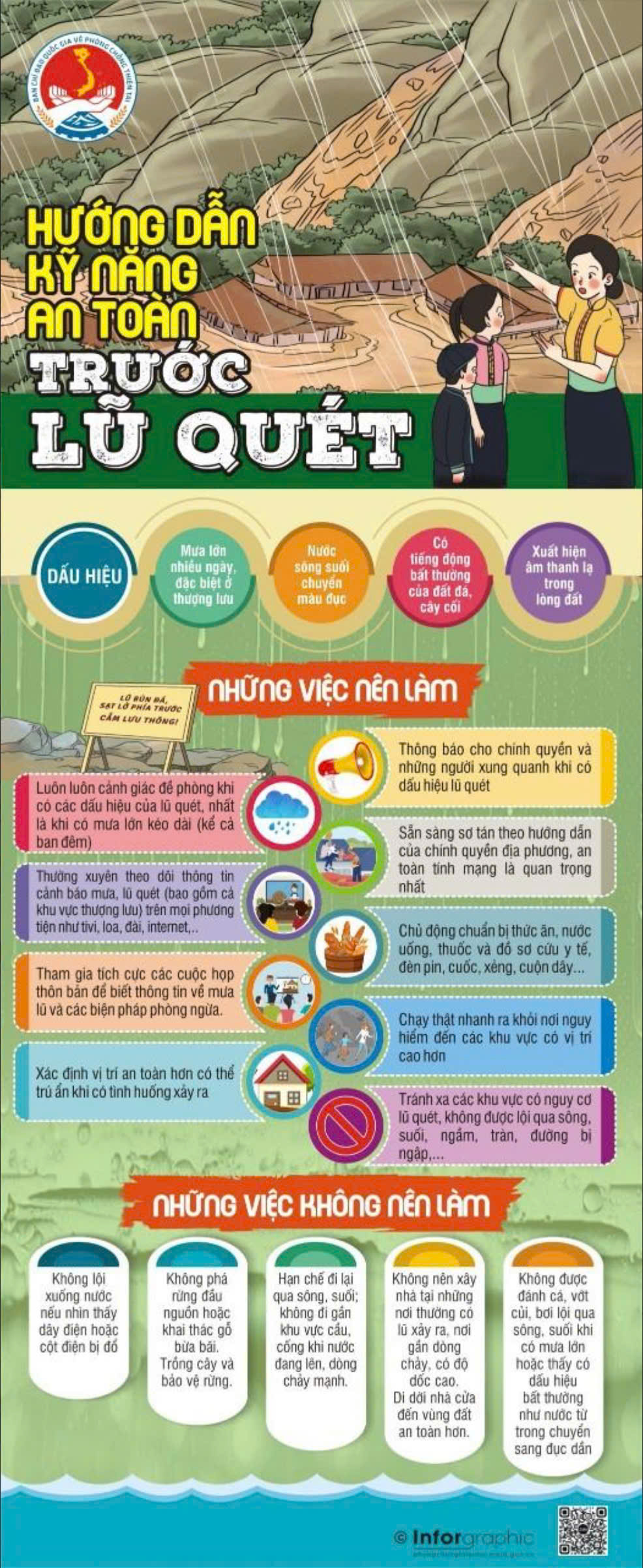 5️⃣Chú ý quan sát các dấu hiệu xảy ra lũ quét, sạt lở đất (Mưa lớn kéo dài ngày, có tiếng động lạ, vết nứt, nước suối chuyển màu; đất đá rơi từ trên taluy xuống đường…) để chủ động phòng tránh.