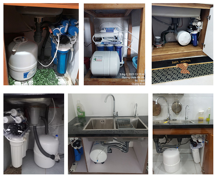 - Máy lọc nước âm tủ không có vỏ tủ: Các lõi lọc được lắp trực tiếp vào âm tủ, không có vỏ tủ bao bọc. Thường có dung tích bình chứa nhỏ và phù hợp cho các gia đình có không gian chật hẹp.
