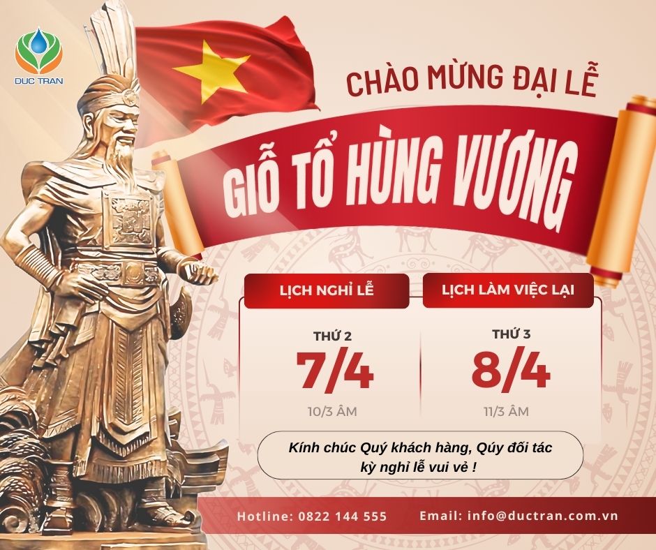 Công ty TNHH Đức Trân xin thông báo lịch nghỉ Lễ Giỗ Tổ Hùng Vương 10/3 đến Quý Khách Hàng và Quý Đối Tác như sau:
